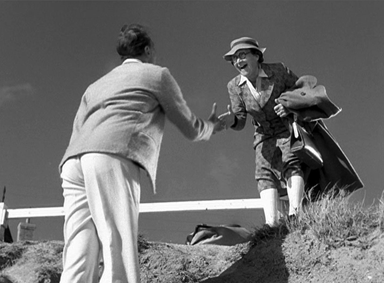 I have been thinking about how this story, which is more a series of light comedy vignettes, ultimately ties together. Now, on second viewing, it seems clear to me that the key is in answering the question: who is it that bothers to say goodbye to Hulot at the end of the film? Of all the characters in the film only two say goodbye to Hulot – the Englishwoman (played by Valentine Camax)…