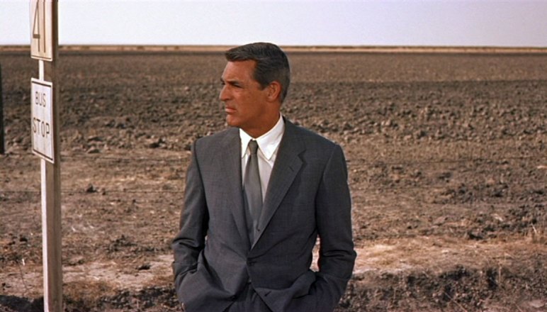 This is what I liked: As he waits, Thornhill sees a car coming, he thinks it might stop, but it goes on by. Cary Grant plays it almost as though it was a silent film.