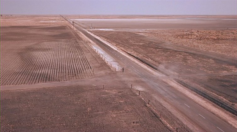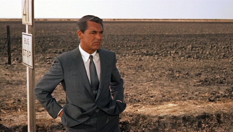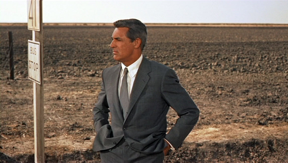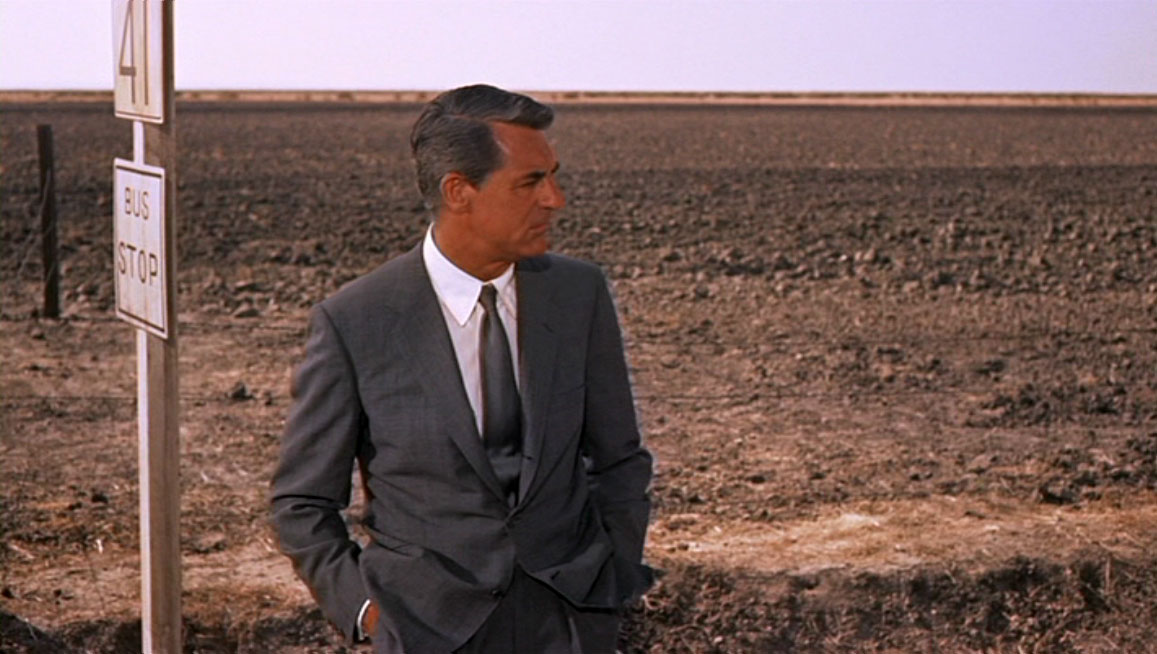 Speaking of North by Northwest, something caught my eye that I really liked. You remember the crop duster scene – it’s so famous that many people know all about it who have never seen the film itself. Well the scene is set up wonderfully, beginning with Roger O. Thornhill (Cary Grant) being dropped off the bus in the middle of nowhere.