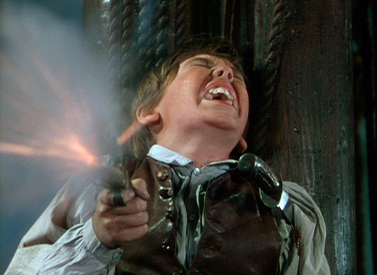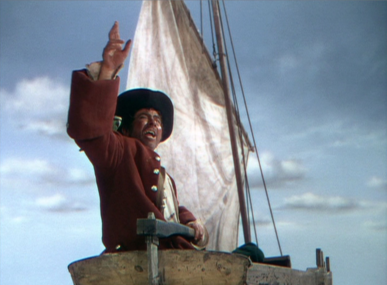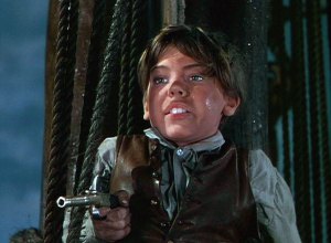 The concept that one could hope for the best for one’s enemies also played itself out in the film. When Silver is trying to escape at the end of the film, Jim helps him. And then Jim and Dr. Livesey (Denis O’Dea) watch as Silver sails away. Dr. Livesey says he almost hopes Silver “makes it.” Silver even waves back – no hard feelings for him either.