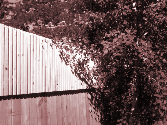 I decided that the fence needed something more than a few boards nailed up to block the view and keep us safer. So I extended the fence higher with a labor intensive hand-made lattice screen made of vertical only boards. I also wanted the screen to look and feel separate from the rest of the fence. I guess I wanted something that was a little more “architectural,” maybe my own little corner of Alvar Aalto or Pietro Belluschi. So the lattice work extends below the top of the foundational 6ft fence by about 5 inches, and then to over 2ft above the fence. It also sticks out about an inch from the fence to give it a more three dimensional look. Overall I like the choice I made, but it took much longer to construct than anticipated.