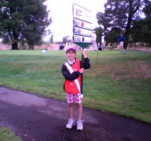 Today was the first day of The Oregon Classic golf tournament. My daughter, Lily, is a member of The First Tee, and the kids were asked if they wanted to be volunteers at the tournament. She held the sign that displayed the player’s scores. We were with Arjun Atwal, Chris Riley, and Jay Don Blake.