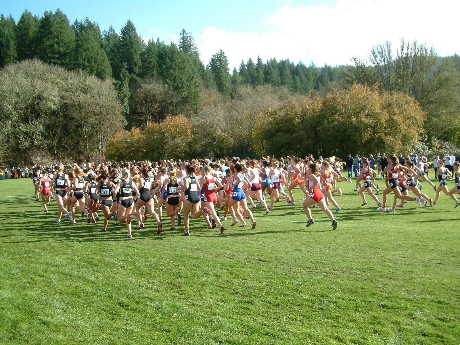 I spent many hours at Hayward over the years watching great athletic performances and competed in some while on my high school track & field team (shot put, discuss, javelin, hammer). Needless to say, I am a fan. But I had never attended a crosscountry meet. So this was new to me. It was every bit as exciting as a top flight track & field competition.