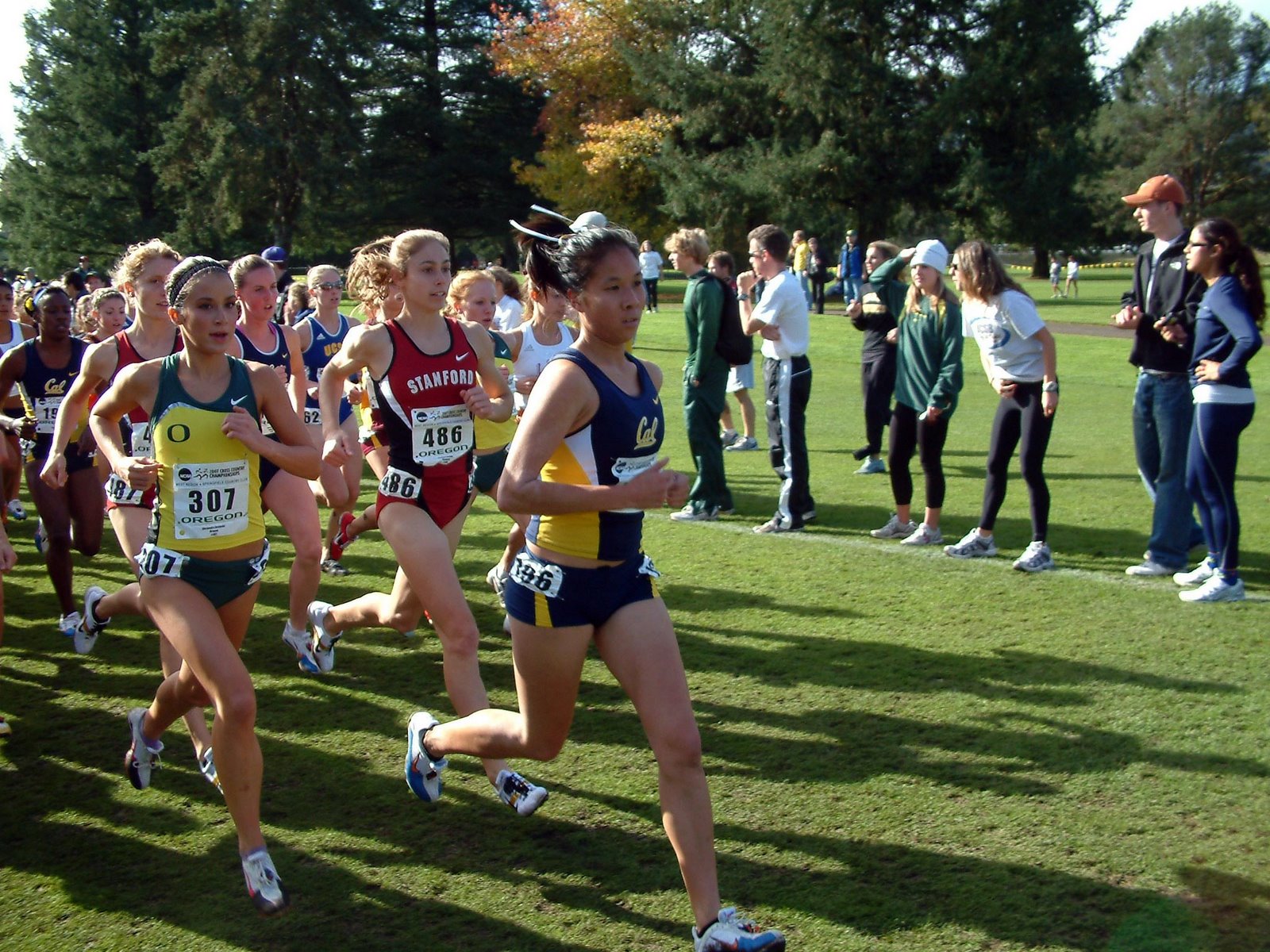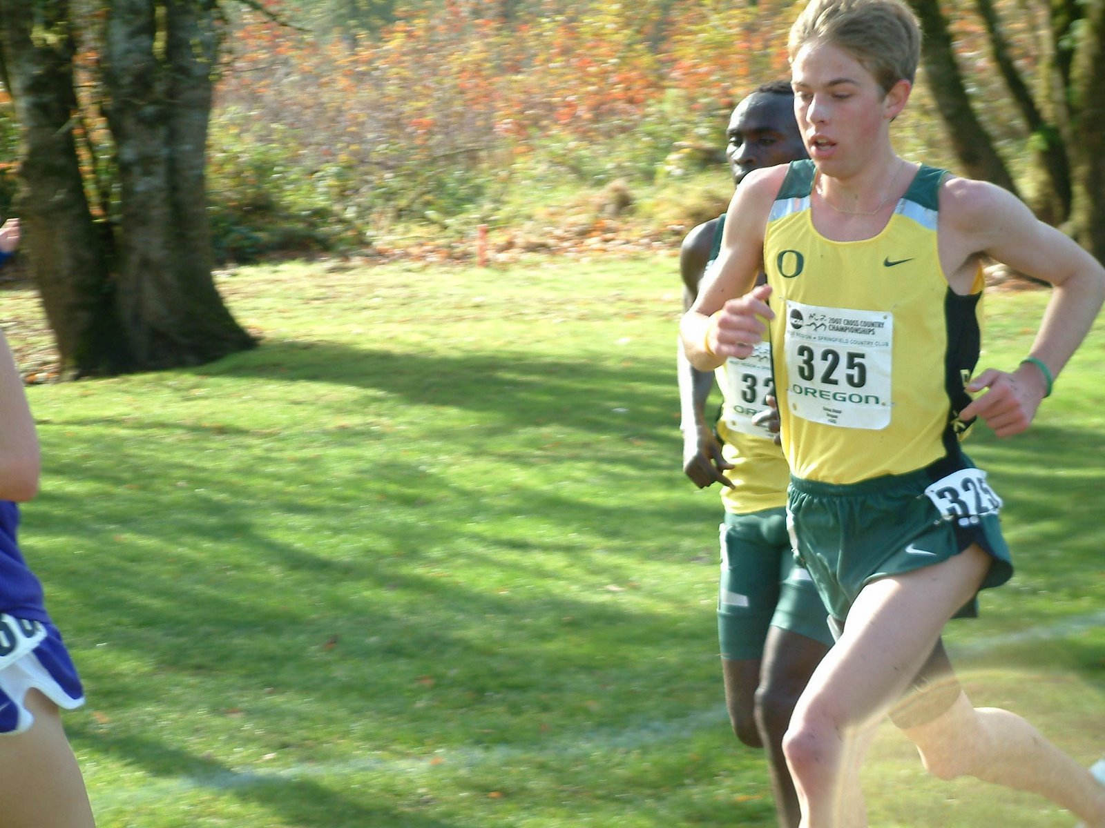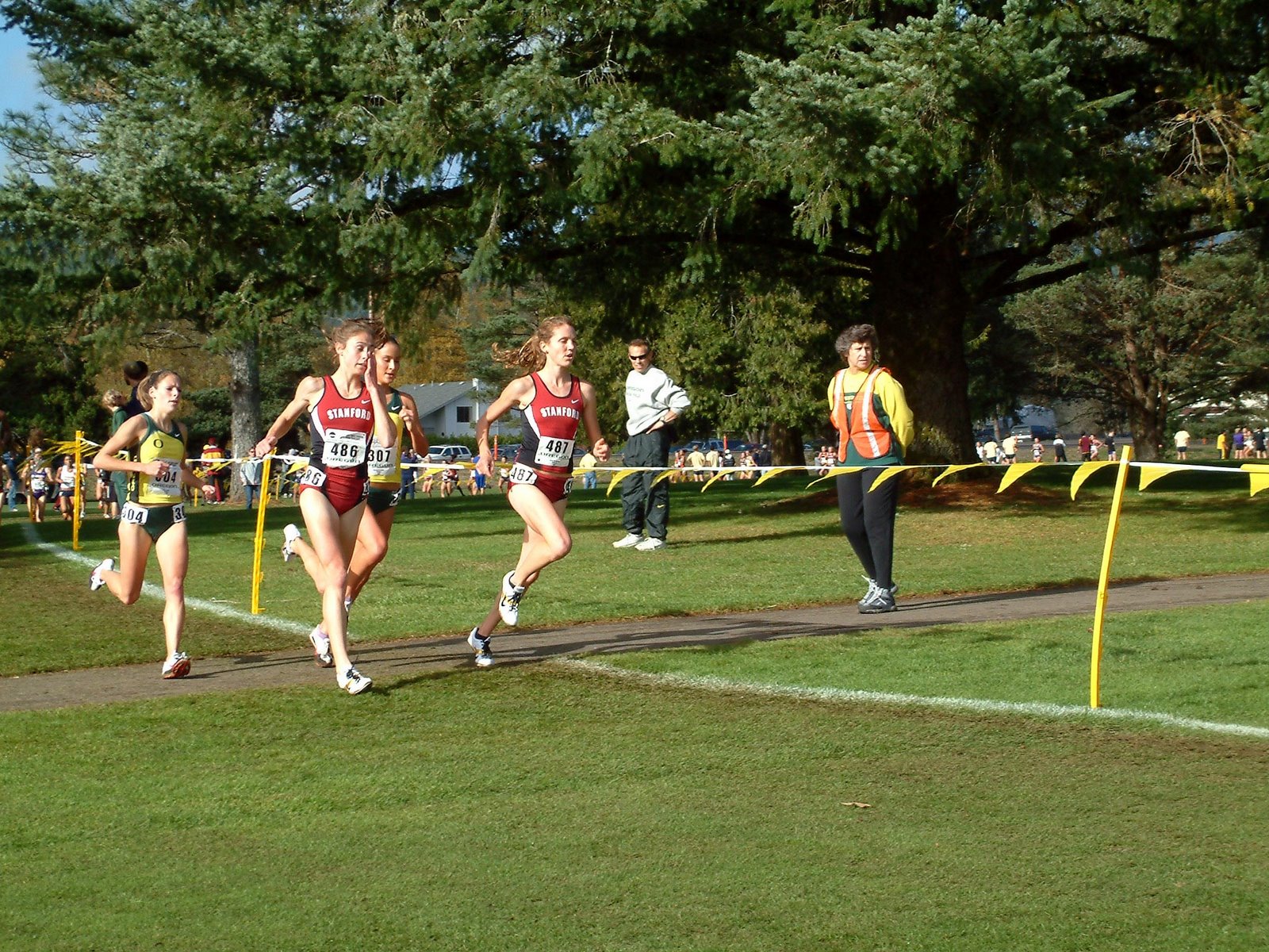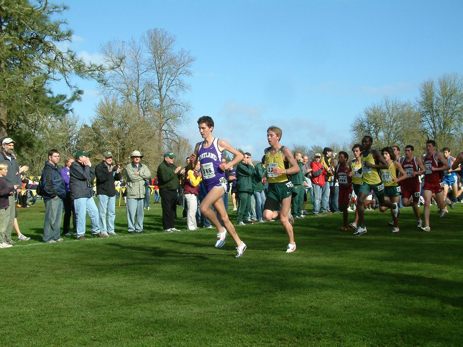 On the second to last lap only four runners remained at the front, two from Standford (one of the great crosscountry powerhouses) and two from Oregon (another great running powerhouse).
