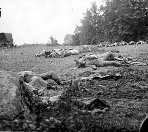 Battle of Gettysburg aftermath. Dead soldiers in the
