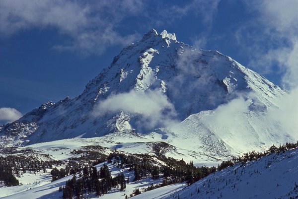 The North Sister is a beautiful peak and one of a group of three dormant volcanoes called The Three Sisters. Of the three it is the most rugged, the oldest, and the most difficult to climb. I have summited it twice. The first time I climbed with a friend – both of us were essentially novices and we traversed an exposed slope near the top without a rope. I vowed never to do that again. The next time I climbed with the local Mountain Rescue team – plenty of ropes this time! I held my own, but was in so much pain getting back to the car that I vowed never to climb another mountain unless I was in sufficient physical shape.
