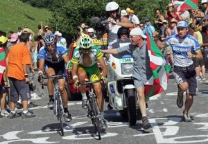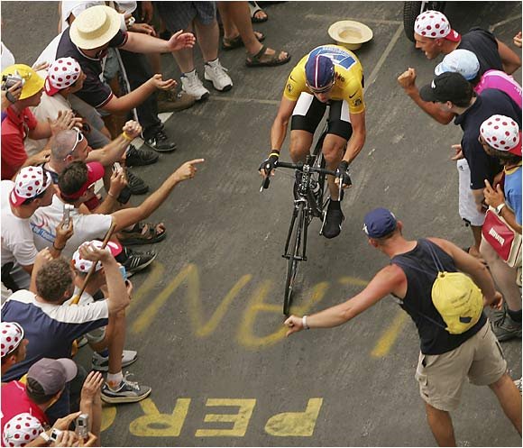 There are also few, if any, sporting events at this level of competition that allow for fans to get so close to the athletes. Fans typically line the routes, often standing only inches away from the riders. Some even pat their favorite riders on the back as the riders struggle up the steep climbs. If a rider falls fans will sometimes rush out to help them right their bike and even give them a push to get moving again. There have even been numerous occurrences in the Tour de France over the years where an over eager fan interfered (usually inadvertently) with one or more riders. One year Lance Armstrong hit the road when his handlebars got caught in a fan’s bag strap that was too far out in the route. Naturally this only made Armstrong angry and he went on to win that stage.