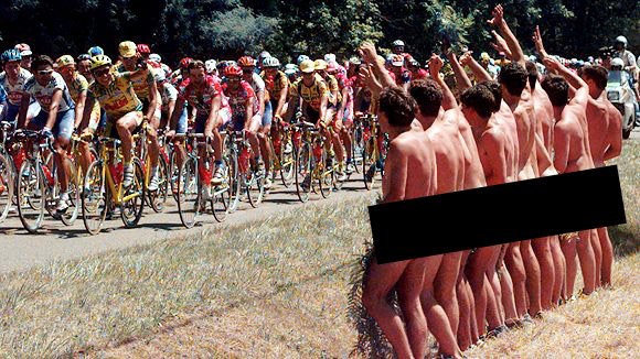 Several times in my life I have stood on the side of the road for local bike races in and around my home town. I have not worn costumes or funny hats or waved flags or painted my face (or belly) or stood naked in a line. But I did cheer loudly and had a great time. A dream of mine is to get to the Tour de France someday and cheer on the big boys.