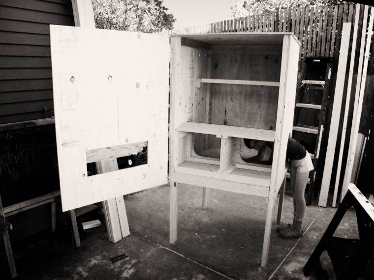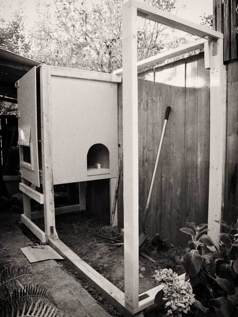 So now we have three chickens. Actually we have had them for more than two weeks and they have been living in my office. For various reasons I was impelled to get them out of my office which required me to build a chicken coop and run. In my typical fashion I plunged ahead without plans and made it up as I went along. This, and the heat we had the last few days, meant it took me far longer than I expected to complete my not-so-masterpiece. Anyway, it’s done and I’m glad. The kids are happy. The dog is somewhat perplexed. The chickens are doing better. And in about six months we should start getting a few eggs.