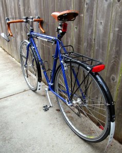 Other items: I have a tagalong hitch on the seat post for when I tow one of the kids. I use blinking safety front and rear lights when it’s dusk and I don’t need the generator lights. I love the front/rear bike racks. The low rider front rack is the the way to go for panniers. I use a bike bell for the river trail. All in all it’s a great bike.