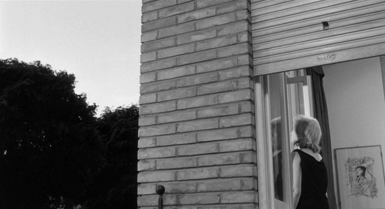Every pessimist is an optimist, and so was Anotnioni. When Vittoria looks out that window at the trees, she is trapped by her own choosing, but she can still choose. The walls of her chic apartment are a barrier to the life beyond those walls, but the apartment has a door. The question is whether she has the eyes to see that she has a choice.