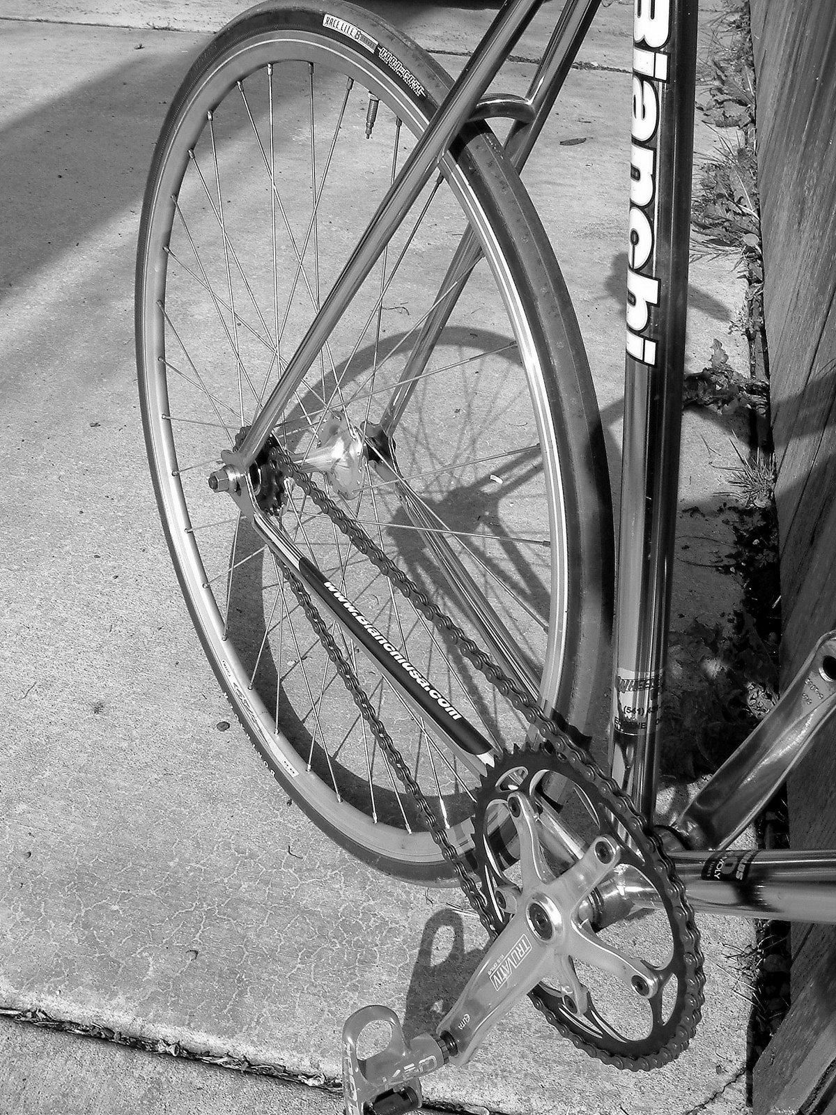 I prefer the fixed gear over the mountain bike because it gives me a better workout, is faster, and is simpler (no shifting). Plus, a fixed gear is cooler – and, as you know, I’m all about being cool.