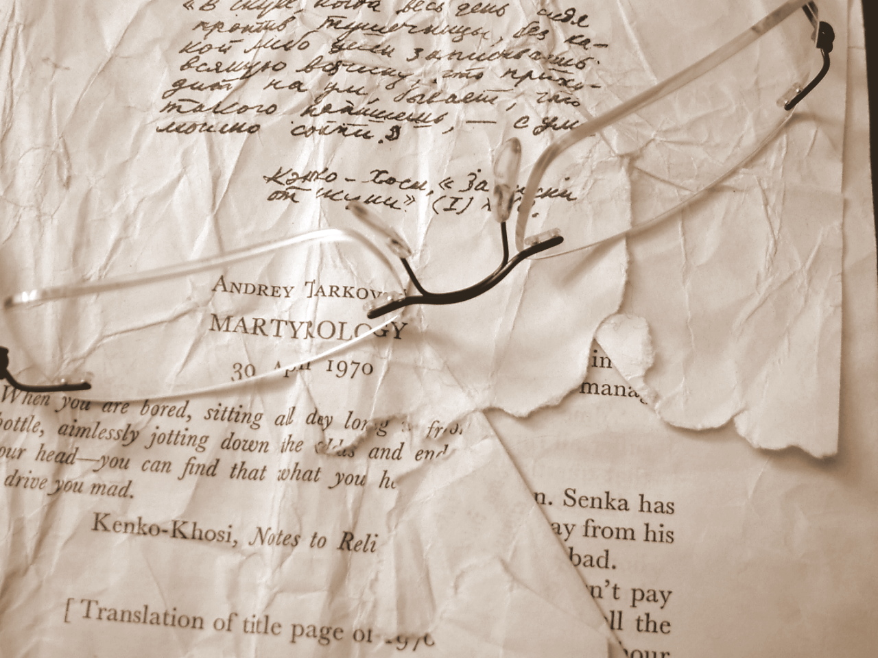I’m looking over at a copy of Tarkovsky’s diaries (Martyrology), or what’s left of it. Years ago I purchased a used hardbound version of the book. Reading it was a kind of revelation for me. Although Tarkovsky complains mostly throughout the book, something I related to being a frustrated artist myself, I found the book to be a delight. Like any collection of journal entries the book is frustratingly incomplete regarding the kinds of information one might want to know, like insight into the directing or editing processes of specific films, etc. But one gets something better. [If one wants to know the process of making a work of art then one needs to make a work of art, and then do it again, and then again. The knowledge comes with doing because making art is like a spiritual practice in that sense.] What Tarkovsky gave us in his diaries is a view into his humanity. He was a remarkable man, but just a man like me. That kind of perspective is infinitely more valuable than “what were you thinking when you made that shot?”