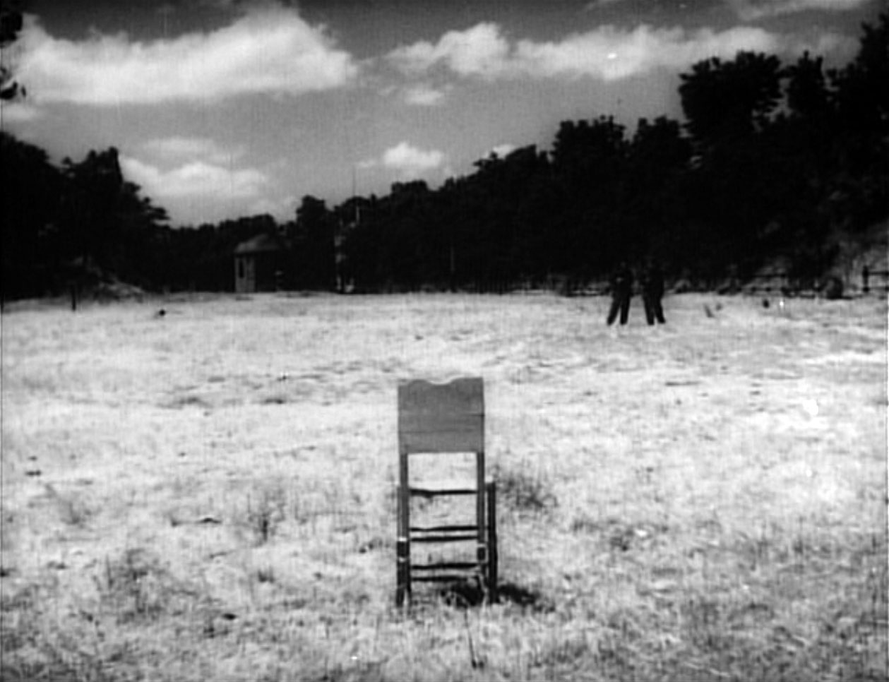 It is a simple image, not particularly artistic or striking. It is just a chair in a field on a bright sunny day, but it is loaded with meaning. This image comes toward the end of Roma, città aperta (1945). The chair is the place of execution of for Don Pietro Pellegrini (Aldo Fabrizi), a collaborator in the resistance against the fascists.